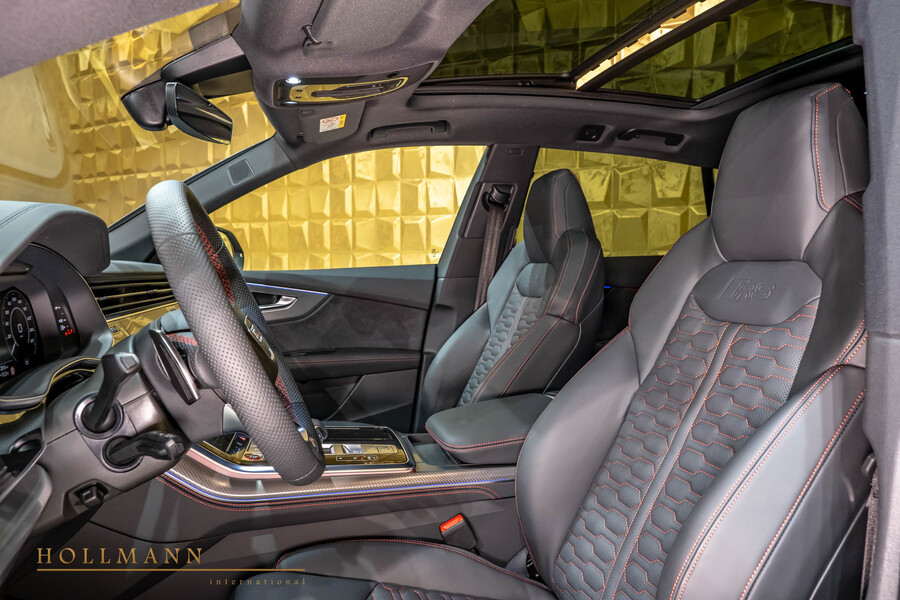 0P6 RS sports exhaust system1KS RS Ceramic Brakes2MB Adaptive Sport Air Suspension9VS Bang & Olufsen 3D Premium Sound System5J4 RS Rear SpoilerVJ3 RS bumpers in body colorQ4Q Sports seats plus (front)VT2 RS entry sillsQQ2 Ambient light package plus1D3 Towbar3FU Panorama glass roof4A4 Seat heating, front and rear4D8 Seat ventilation and massage function, front4ZP Black Audi rings and emblems6XL Exterior mirrors with memory function8T5 Adaptive cruise control with assistIU4 Smartphone Interface4GF Heat Reflecting WindshieldKS1 Head Up displayPA6 Black optics packageKA6 Parking camerasPG3 Convenience key and Sensor tailgate openingPK6 Remote controlled parking heaterPCF Parking Assist PackagePXB HD Matrix LED headlights with Audi laser lightQL5 Private tinted windowsUE8 Rear USB ports with charging functionWSI ProlineGZ0 Power operated door (power latching)9AE 4 zone climate control system7AL Anti theft alarm system4E7 Electric luggage compartment lid2V9 Ionizer and fragrance system3CX Partition netIU4 Smartphone interfaceIT3 Connect Navigation & InfotainmentIW3 Emergency Call Service7J3 Virtual cockpit plus7K3 Tire pressure monitoring system6K8 Pre sense frontUH2 Hold assistQR9 Traffic sign recognition0N5 All wheel steering2H9 Audi drive select0M5 Fuel tank with increased capacity4GF Heat insulating glass6E6 Comfort center armrest (front)3NS Rear bench seat plus6NQ Black headliner✓ Lieferung weltweit möglich