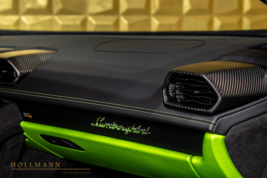 4B2 Livery 1 Color Accent0PS Livery 3 ShinyPCG Verde Scandal CCB Brake CalipersW10 Style Pack High Gloss BlackPZ3 Liftig SystemW0N Bicolor Trim with Laser Graphic1XA Multifunction steeringwheelPV6 Sport Seats9VK Lamborghini Sensonum SoundsystemPB9 Apple CarplayKA2 Rear view Camera4U1 Travel Package8T2 Cruise Control System✓ Lieferung weltweit möglich
