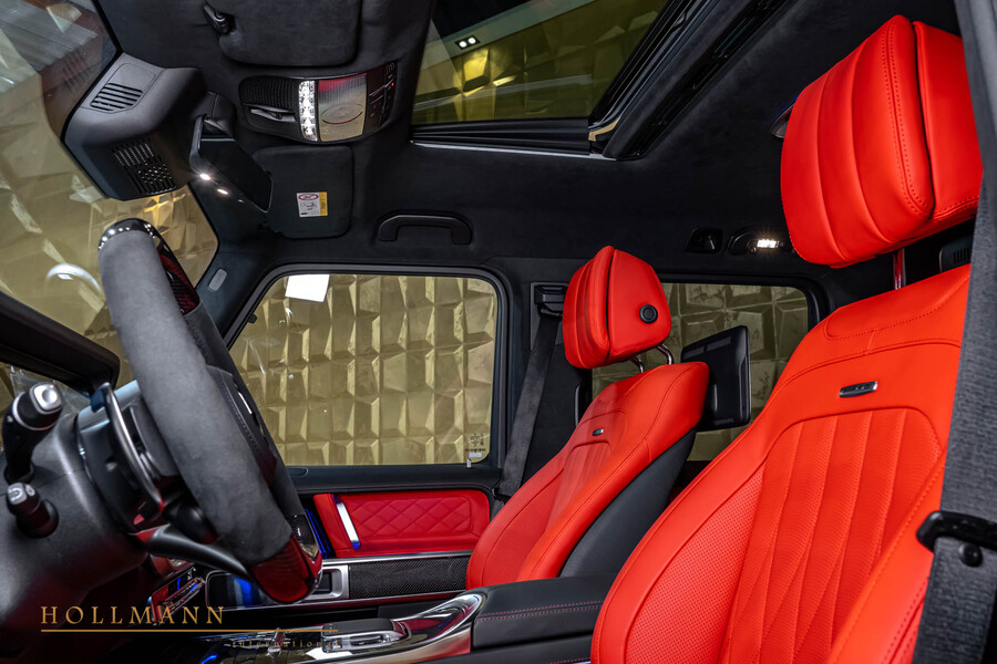 A22 AMG ACTIVE RIDE CONTROL854 Rear Seat Entertainment System Plus TV889 KEYLESS GO810 Burmester Premium sound systemL6H AMG steering wheel in carbon fibreU88 AMG steering wheel buttonsPK2 Active Multicontour Seat package PlusU78 Switchable exhaust system840 Privacy Glass891 Premium ambiance illuminationHA1 Fresh Air packageP56 AMG Night packageP77 Exclusive Line Interior PlusP79 Assistance PackageP82 Anti Theft Package PlusPA8 Parking package with 360° CameraPAZ Extended Exterior AMG Night PackagePK1 Comfort PackagePT1 Engineering package04U Front view for off road driving14U Smartphone integration220 PARKTRONIC system (PTS)228 Additional warm water heating22U MBUX Entertainment231 Garage door opener234 Blind Spot Monitoring235 Active Parking Assist239 DISTRONIC243 Active Lane Keeping Assist249 Automatic dimming mirrors266 Active Steering Assist273 Exit Warning Function311 Tempered Cupholder32U Sound Personalization34U Remote Services Premium355 Extended MBUX Functions414 Sliding Sunroof470 Semi Active Roll Stabilization513 Road Sign Recognition System546 Automatic Speed Control550 Trailer Coupling597 Heated Windscreen5U8 Dimmed Headlamp628 High Beam Control Plus (IHC+)642 Dynamic LED Headlamps682 Fire Extinguisher6U6 AMG Fuel Cap897 Front Wireless Telephone ChargingB61 AMG DYNAMIC SELECTC51 Front Illuminated Door SillCA0 AMG Specific Grille in Dark ChromeFH5 Black DINAMICA Microfiber RoofG44 AMG Speedshift PlusQ55 Trailer CouplingS81 Diamond DesignSF1 Seat Comfort FunctionsU19 Augmented Reality Video✓ Lieferung weltweit möglich